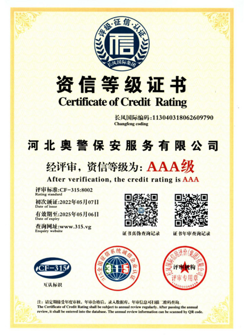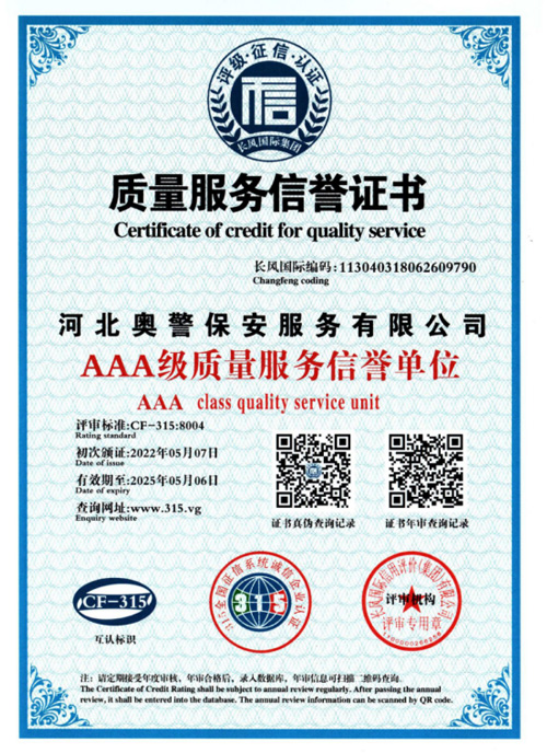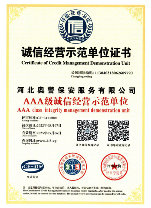 奧警邯鄲保安公司是一家民營保安服務公司,工商行政管理局登記注冊,獲取相關(guān)等級資質(zhì)證書,是一家大型的保安連鎖服務公司。